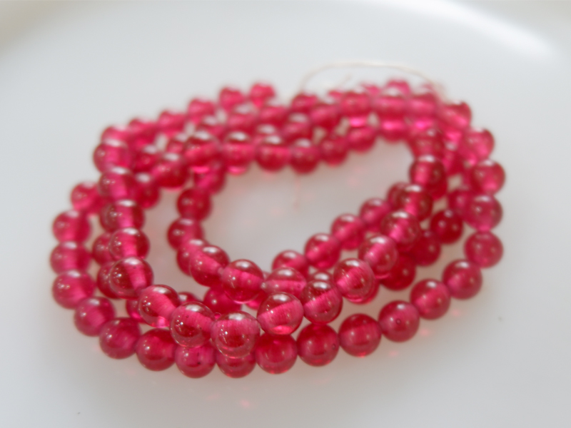 ジャパンヴィンテージ・ガラスビーズ【濃ローズ】ラウンド6mm 約98粒