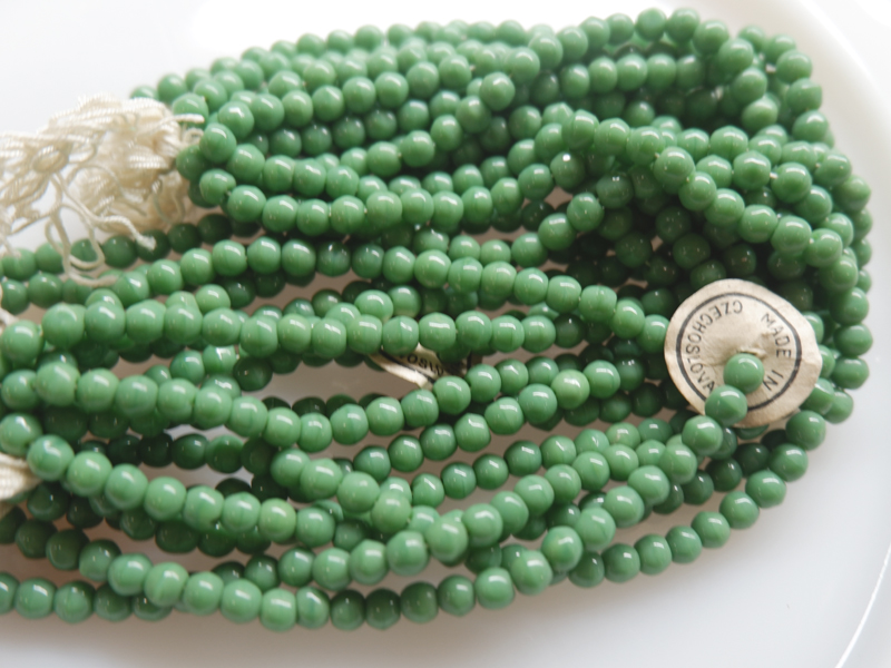 チェコスロバキア ヴィンテージ・ガラスビーズ【グリーン4ミリ】 約50個