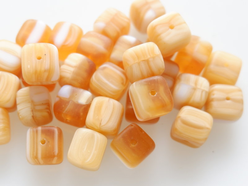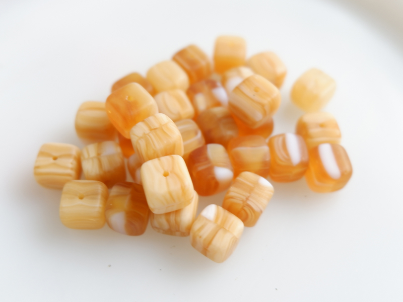 チェコヴィンテージ・ガラスビーズ【キューブ オーカー系 8ミリ】8個