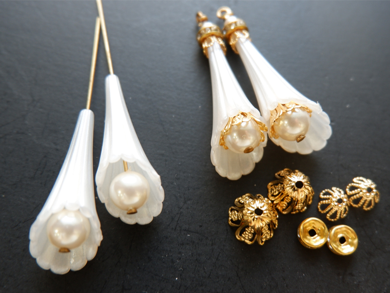 ドイツヴィンテージ ルーサイト系ビーズ【コーン・パール30ミリ】2個 ブライダルにも