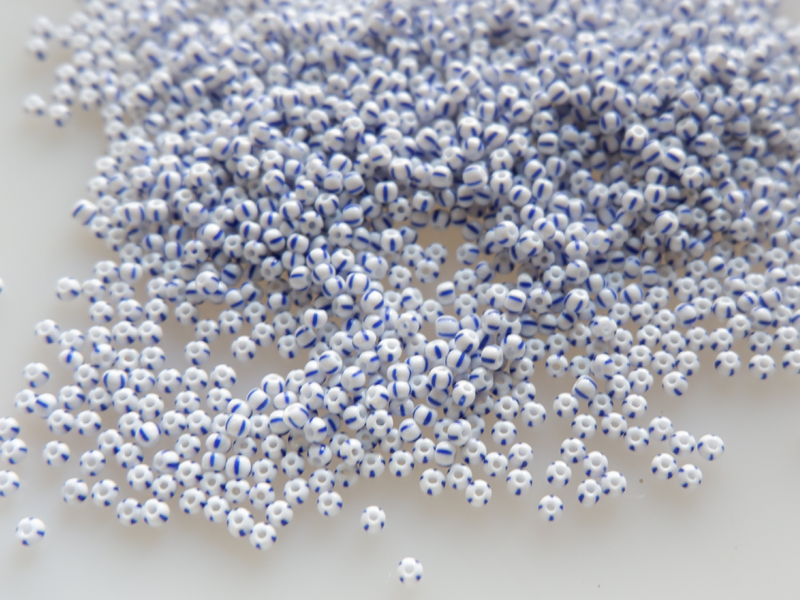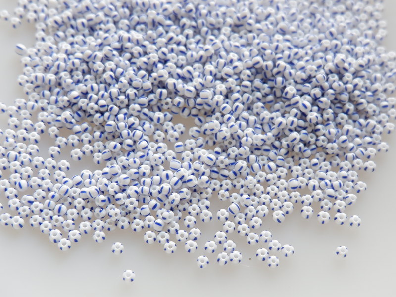 チェコスロバキア ヴィンテージ・シードビーズ2.2ミリ 11/0【ホワイト×ブルー】5グラム 丸小ビーズ カンネ