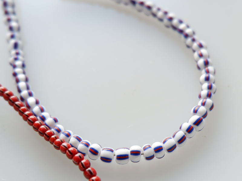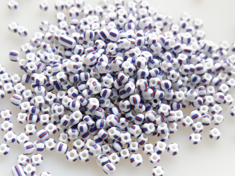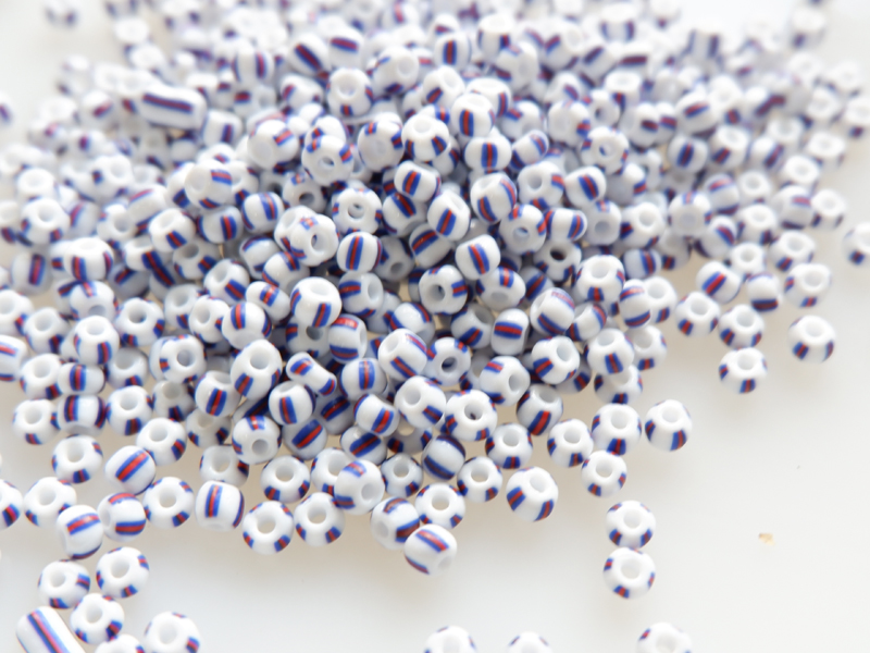 チェコスロバキア ヴィンテージ・シードビーズ3.4ミリ 7/0【ホワイト×ブルー×レッド】6グラム カンネ