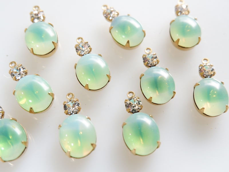 ドイツヴィンテージ ラインストーンチャーム【ダブル 乳白グリーン】12×10 2個 サブリナ