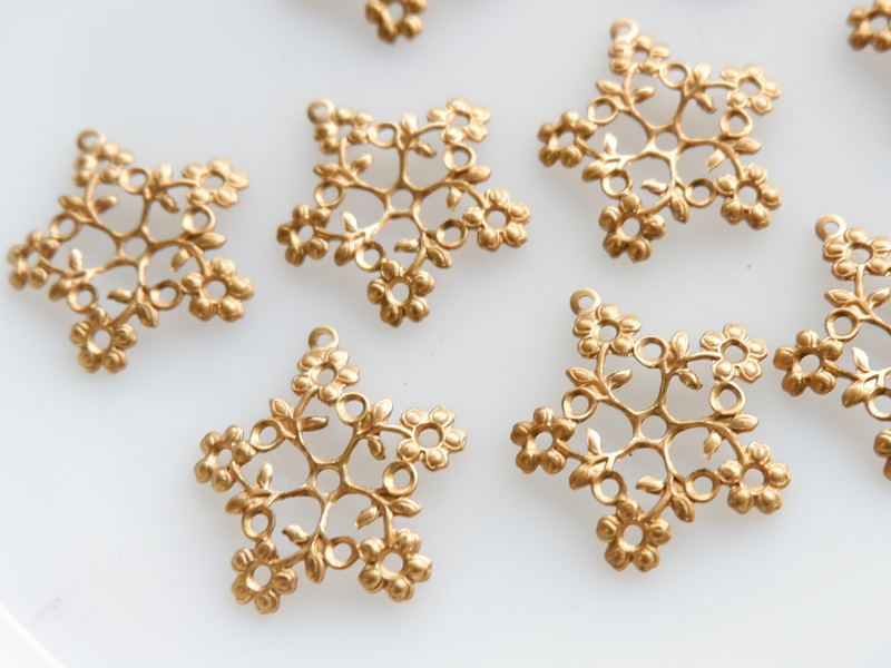 ヴィンテージ真鍮製 フラワーフィリグリー25ミリ 2個