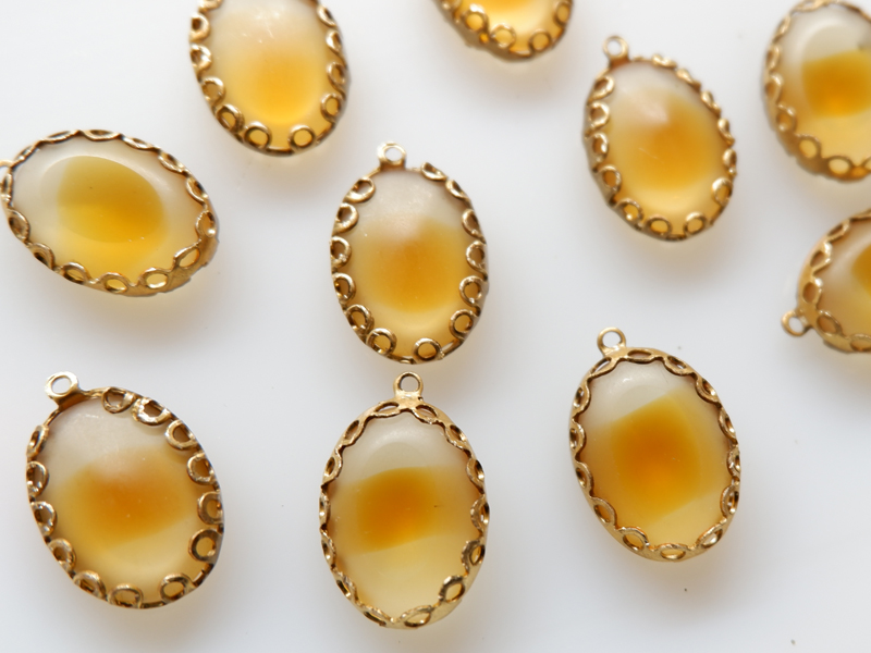 ドイツヴィンテージ ラインストーン【トパーズ・ギブレ】18×13ミリ レースフレーム 2個