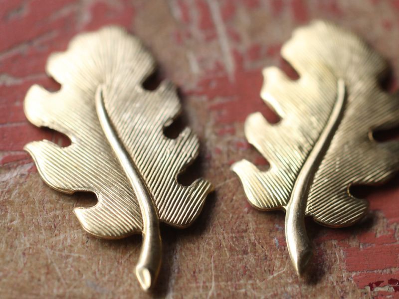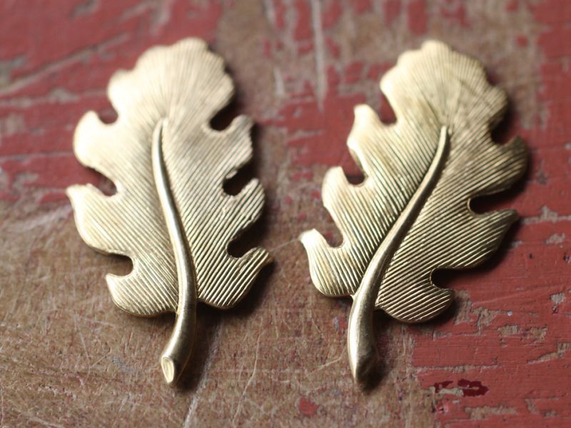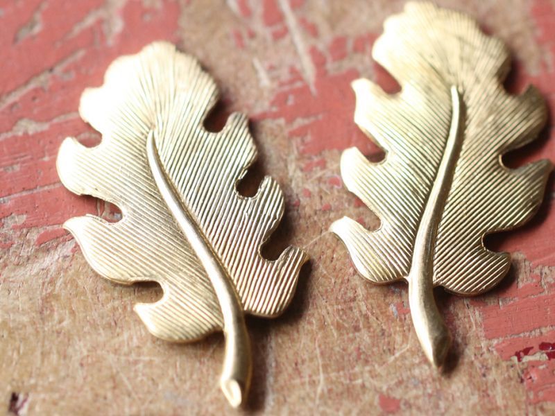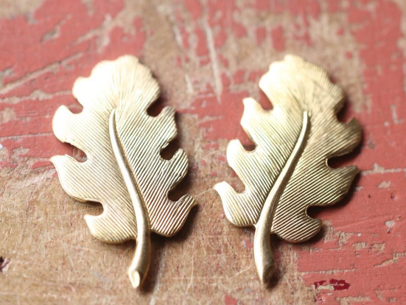 アメリカ製 真鍮(ブラス)パーツ・オークリーフ【小】(左右対称2個セット)